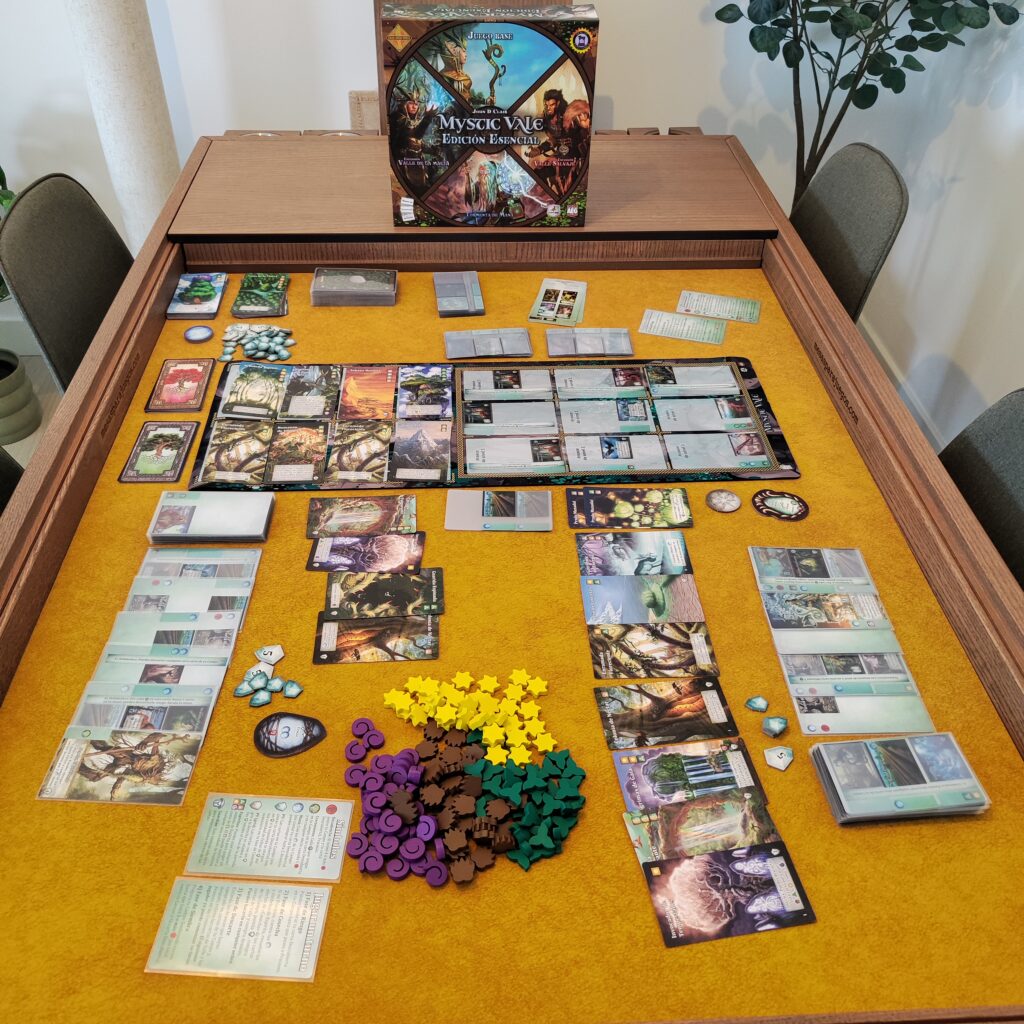 🎲 Mystic Vale es un juego de construcción de mazos en el que, en lugar de incorporar nuevas cartas a estos, lo que haremos será mejorar las cartas que ya tenemos.