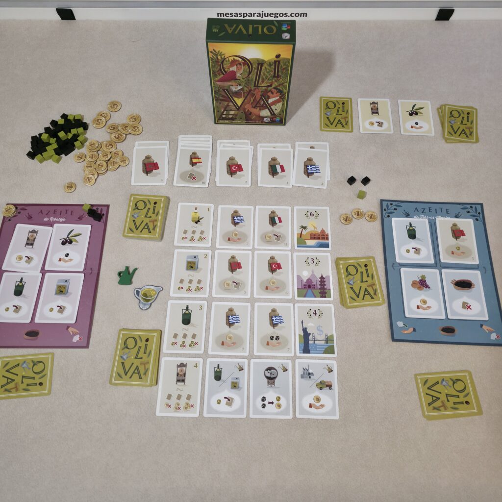 💬 Oliva propone una combinación curiosa de mecánicas. La construcción de nuestro mazo la llevaremos a cabo cogiendo cartas, a las que podremos renunciar, para incrementar el valor de otras similares, lo que siempre nos pondrá en el dilema de qué hacer. Pero, además, será muy importante la decisión táctica de las cartas a jugar en función del estado de la mesa. Es una especie de tableau building conjunto, pero que va cambiando constantemente, de forma que nuestras decisiones de este turno condicionan las jugadas del siguiente. Y no solo las nuestras, sino las de todos los jugadores. Muy curioso, muy original, al principio poco intuitivo pero que deja muy buen sabor de boca.
