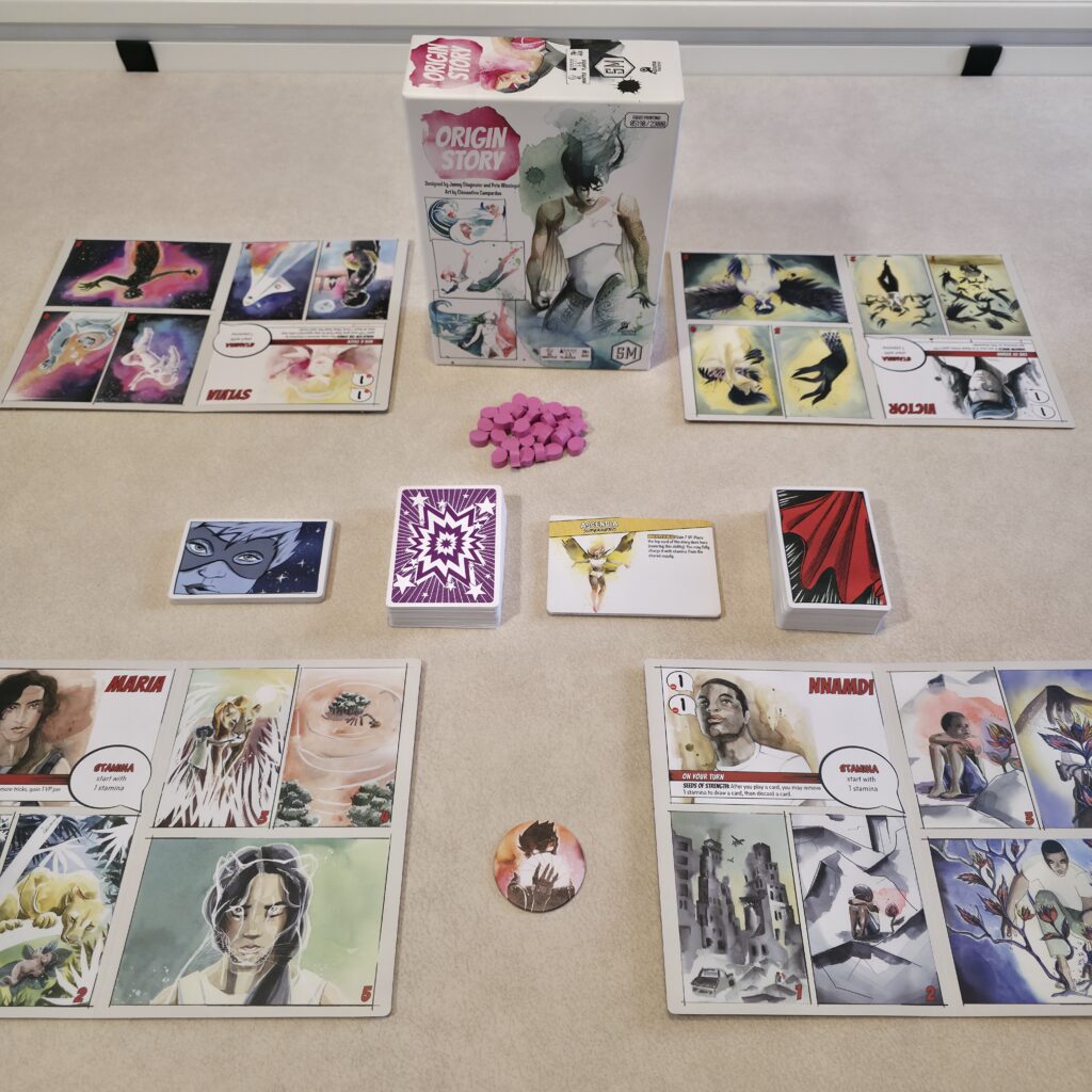 💬 Origin Story es el juego de bazas que no sabías que necesitabas. Sobre una base clásica, construye un juego en el que iremos progresando de manera natural a lo largo de varias rondas. Al principio simplemente tendremos una pequeña habilidad sobre la que apoyarnos, pero ronda a ronda nuestra estrategia y forma de jugar las bazas cambiará. Y además, con la enorme variedad de cartas, cada partida será diferente.